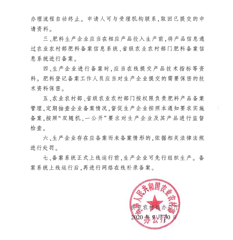 农业农村部办公厅关于对部分肥料产品实施备案管理的通知