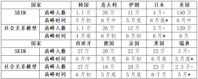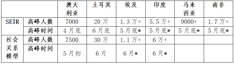 注:*国家尚未施行严格的封锁措施,高峰人数为根据当前趋势估计的截止时间确诊人数。