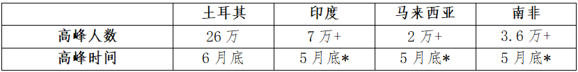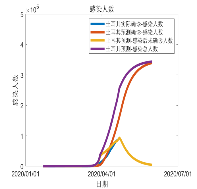 在近期疫情爆发的国家中,澳大利亚疫情已经得到控制,在两个模型中事实传染数均已低于1,土耳其虽然事实传染数有所下降,但确诊病例增长仍然快于欧美国家。其他4个国家更是处于疫情快速蔓延期,我们根据目前的情况估计了其疫情未来的发展态势。