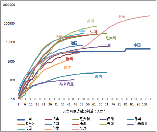 图4 10例后各主要疫情国家死亡病例(5月5日)