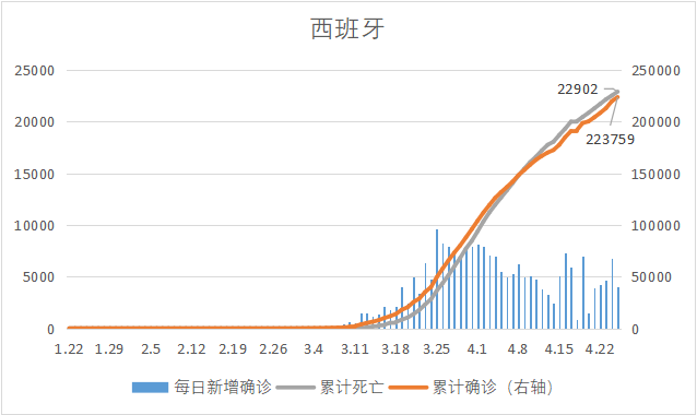 注:1)当前确诊人数为截至4月26日的数据(约翰霍普金斯大学)