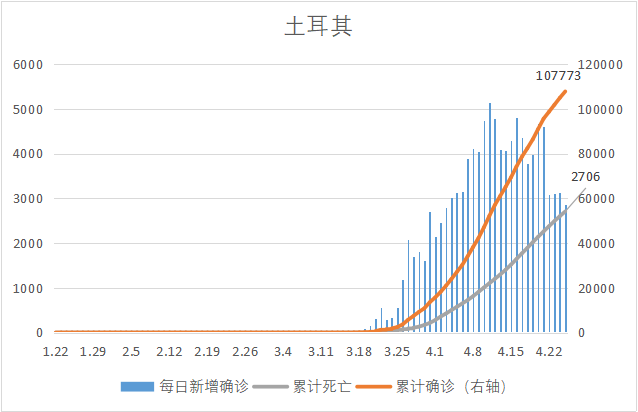 土耳其是目前中东确诊病例最多的国家。截至4月25日,土耳其确诊病例为107773例。SEIR显示,6月底土耳其累计确诊人数将达到高峰,峰值为20万人,我们根据死亡率对该国数据进行了调整,结果显示6月底土耳其实际感染人数高峰将达到26万人;社会关系模型则显示,确诊病例将在6月达到30万人的峰值。