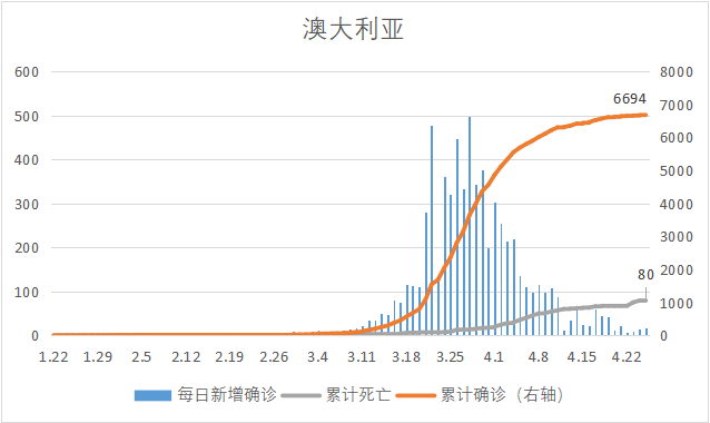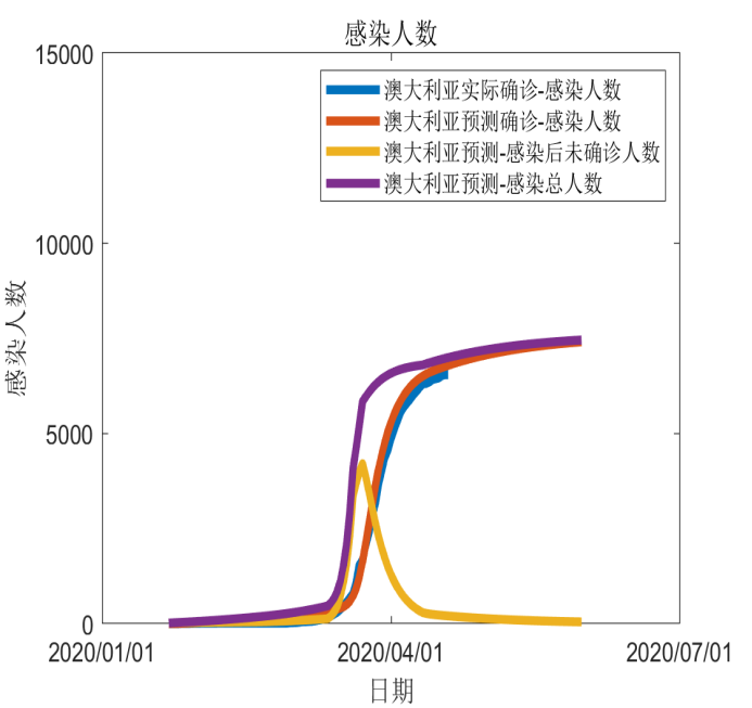 澳大利亚疫情已基本得到控制,截至4月25日,澳大利亚确诊病例为6694例。社会关系模型显示,澳大利亚确诊病例将在5月初达到峰值,约为7500例确诊病例;SEIR模型显示,确诊病例高峰将在4月底出现,累计确诊病例为7000人。