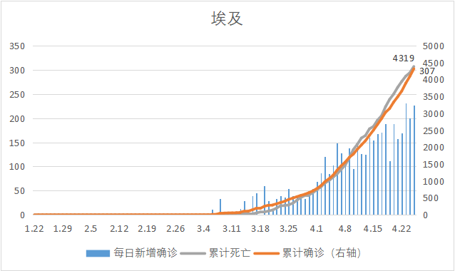 截至4月25日,埃及确诊病例为4319例。由于仍然处于疫情爆发早期,且受制于检测能力限制,目前判断埃及确诊病例高峰仍然困难。SEIR显示,截至5月底埃及累计确诊人数将至少达到1.3万人;社会关系模型则显示,确诊病例将在6月突破1.1万人。