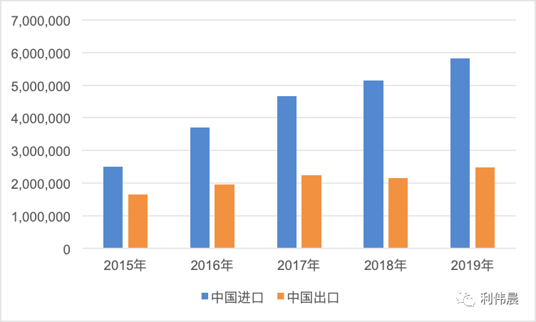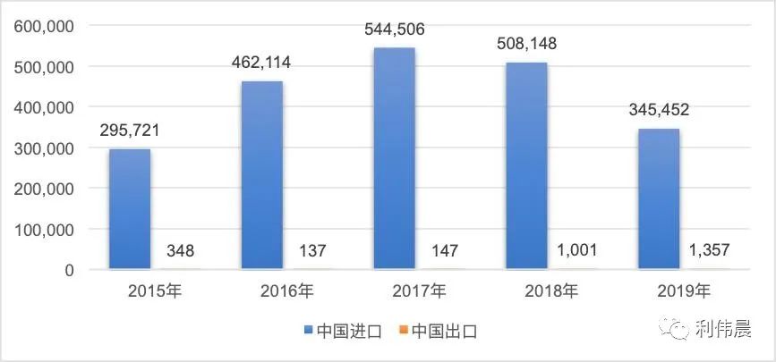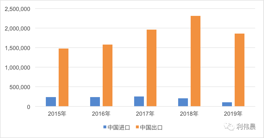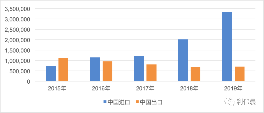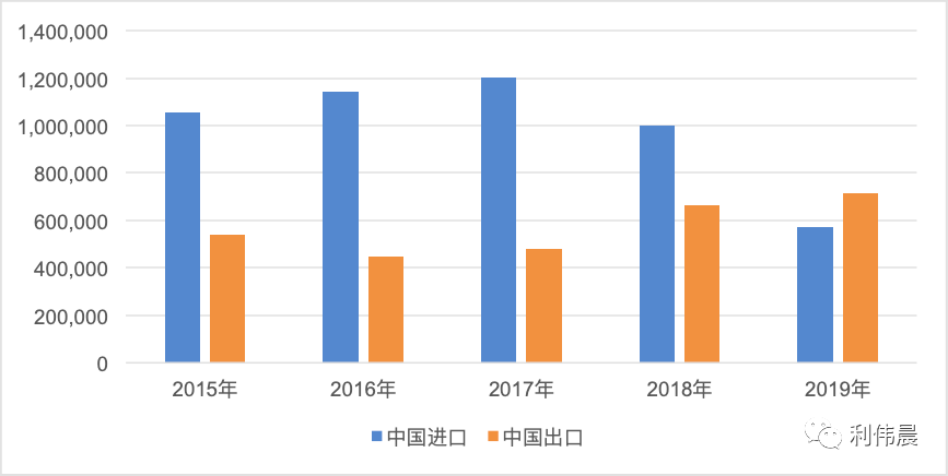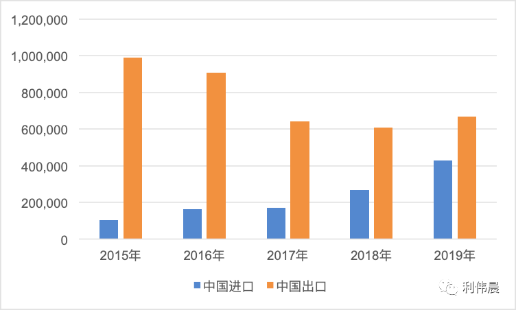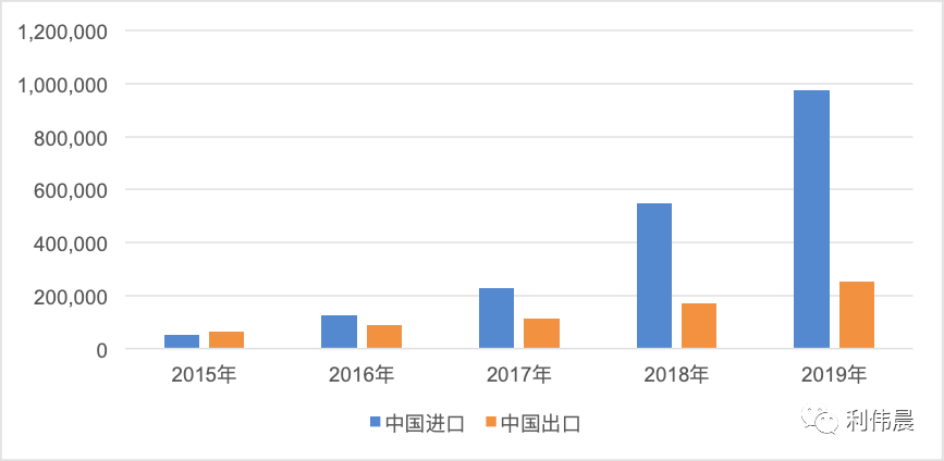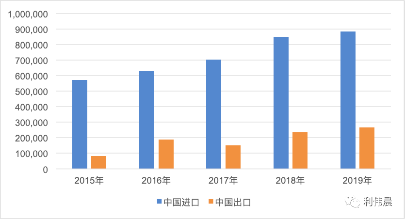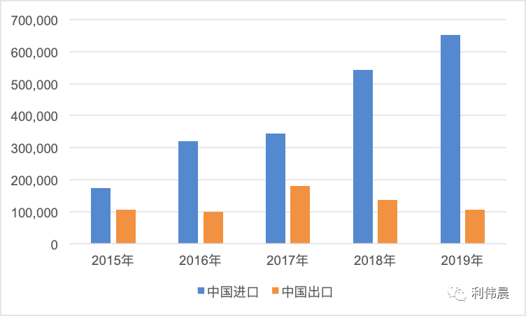 图5 2015年-2019年中国与泰国谷物贸易情况(单位:千美元)