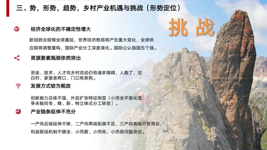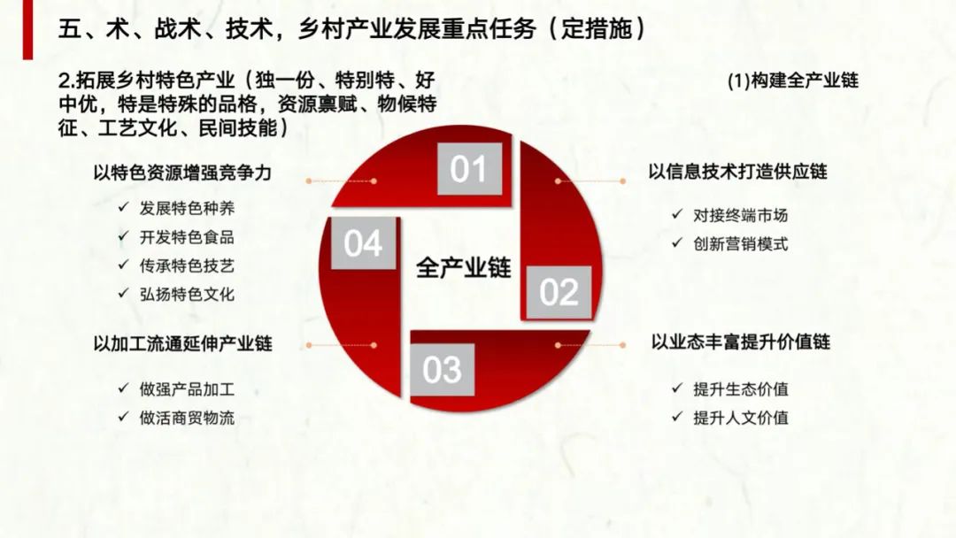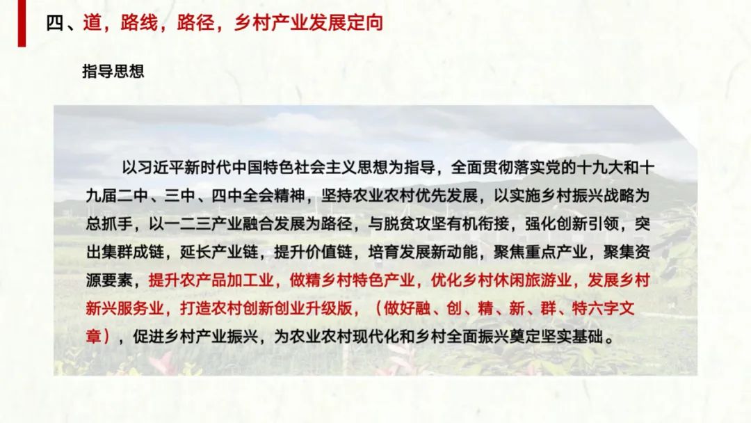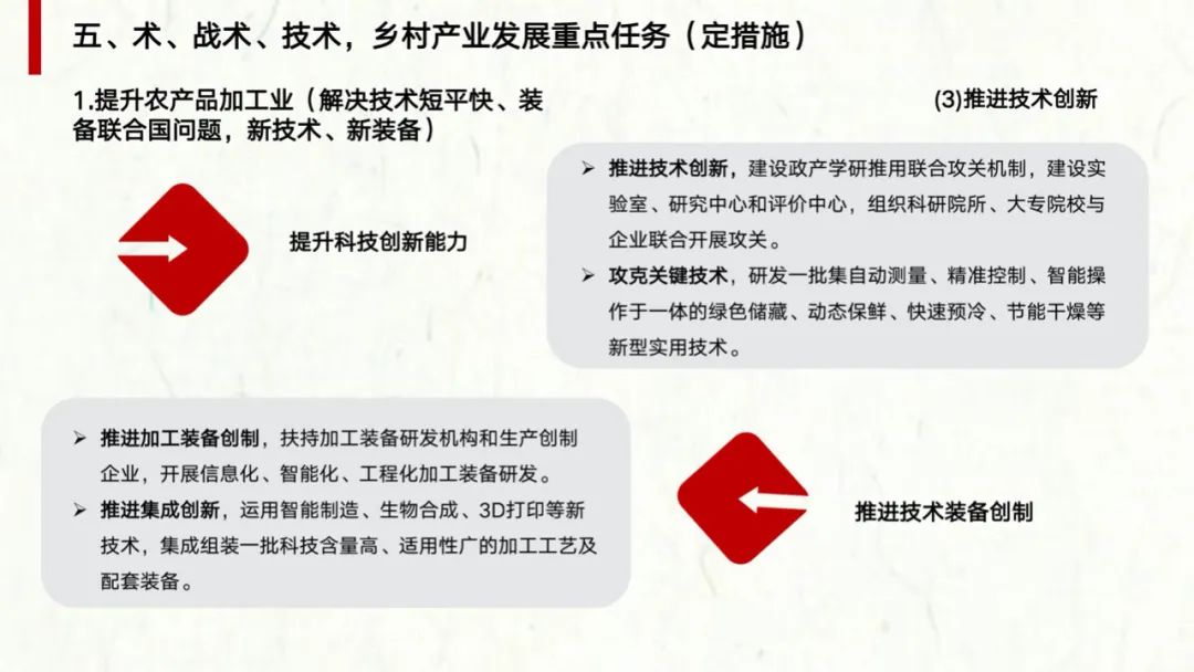 近日,农业农村部乡村产业发展司农产品加工处处长陈建光开展视频讲座,围绕乡村产业面临的机遇与挑战,及乡村产业发展定位、成效、定向、重点任务,对《规划》内容进行解读。