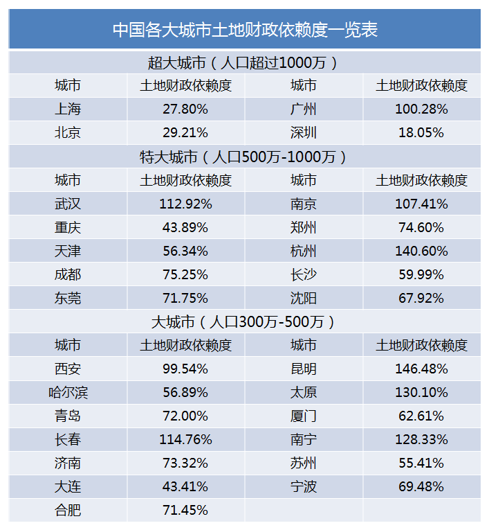 高周转,相当于快速地将地产推入金融高速轨道,即利用最少的时间,最大的杠杆,把规模做到最大。其实,这是一种无限接近“空手套白狼”的玩法。为了快速扩大规模,中型开发商大量采用合作杠杆,使用资管、信托等高成本融资手段。大、中、小型房企的合作杠杆率分别为0.19、0.24、0.16,中型房企的合作杠杆率明显高于大型房企。我们还看中梁,中梁的扩张资金主要来自信托、资管——一个叫忠信资本的资本运作平台。去年中梁招股书数据显示,截止2018年底,中梁还有109个信托或资产管理计划尚未偿还,总额达到147亿元,占借款总额约54.5%。我们再来看这家公司的负债率变化:2015年为1335%、2016年为1790%、2017年为339%、2018年为58%。犹如过山车般惊心动魄的负债率曲线,说明中梁高周转是一种极端杠杆模式。这些年,高周转放大了房企的杠杆,加剧了房地产的脆弱性。事实上,过去两年,银行信贷收紧,地产商融资成本增加,一些中小房企资金链断裂。但是,这条负债率曲线也说明,一旦房企拿到“安全门票”,便容易通过传统渠道融资,如银行信贷、股票市场,从而降低负债率。所以,高周转导致房地产市场更加脆弱、银行风险更大、土地财政依赖度更高。通过这轮高周转,大型房企与银行、政府形成高度关联的利益共同体。终结高周转,深层次的压力在银行和政府身上——金融风险、政府债务风险以及土地财政。2019年,中国政府部门杠杆率为51%,居民部门杠杆率为52%,非金融企业部门杠杆率为154.5%。目前,中国的宏观杠杆率已经超过美国,接近发达国家的平均水平。这意味着中国未富先“债”,经济增长过度依赖于债务。再看土地财政到了什么程度,土地财政依赖度超过100%的城市,有广州、武汉、南京、杭州、昆明、南宁、太原、长春。表:各大城市土地财政依赖度,来源:网络公开数据,智本社所以,政府救楼市,表面上救开发商,其实是在救银行、救财政。疫情期间,地方政府准许开发商延期缴纳土地出让金、延期缴税,减免房产税、城镇土地使用税;降低信贷门槛,给房企提供信贷支持;开放售楼处,降低预售门槛。房地产商与所有企业一样对这次疫情毫无准备,打断了房企的高周转,势必进一步增加融资成本,甚至加剧房企倒闭。苏州的土地新规,取消现房销售和封顶销售的限制,这其实很明显地在支持高周转,促进地产商快速“回血”。很多人会问,地产商赚了这么多钱,难道扛不过这几个月吗?在高周转的推动下,每一个项目就像接力跑,从拿地到销售,一环套一环,一个项目接一个项目,资金快速滚动。公司利用快速周转的现金流及快速获得的土地,从银行、资管等渠道获得资金。这就相当于负重快速奔跑过浮桥,是停不下来的,一旦停下来则掉进河里。一旦销售终止或销售快速下降,新项目融资成本高企,同时支付利息的压力巨大。通常,经济正常波动,政府不需要救市,更不能深度介入市场。但是,这次不一样,因为疫情的突然爆发导致市场中断,这并非“正常”的经济波动。疫情爆发初期,疫情信息未能流动,市场没有接收到信息,导致供给系统失灵。当疫情信息公开后,政府接管、严控,市场被迫中断,企业猝不及防,打乱了企业主的预期。政府救市的目的是,修复企业及家庭资产负债表,帮助市场恢复正常的供给系统,帮助企业主重构市场预期及信心。但是,政府出手,不应该是救楼市,或是救车市,亦或是救任何一个产业、市场或企业,而应一视同仁地“救市”。什么意思呢?