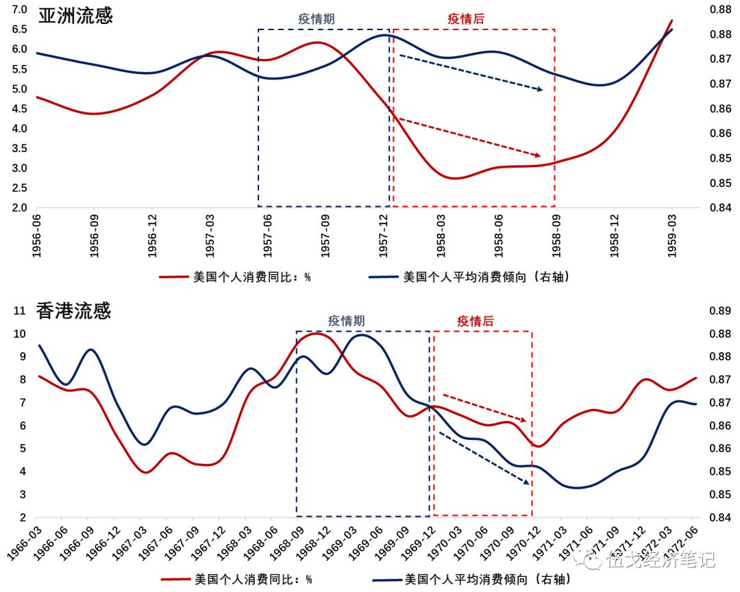 与国际金融危机等冲击不同的是,瘟疫这种“天灾”对整个社会经济活动的影响更为复杂。历史上,美国曾经历亚洲流感和香港流感两次较为严重的疫情。不仅疫情期间的居民消费明显下滑,而且疫情过后仍十分低迷。究其原因,疫情对居民消费意愿的影响较为持久,且失业率滞后上升会导致居民收入下降。可见,即使国内疫情得到有效控制,未来居民消费的恢复仍需时日。