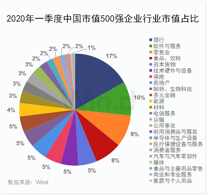 银行业市值占比最高,达17%;其次是软件与服务,占比为10%。