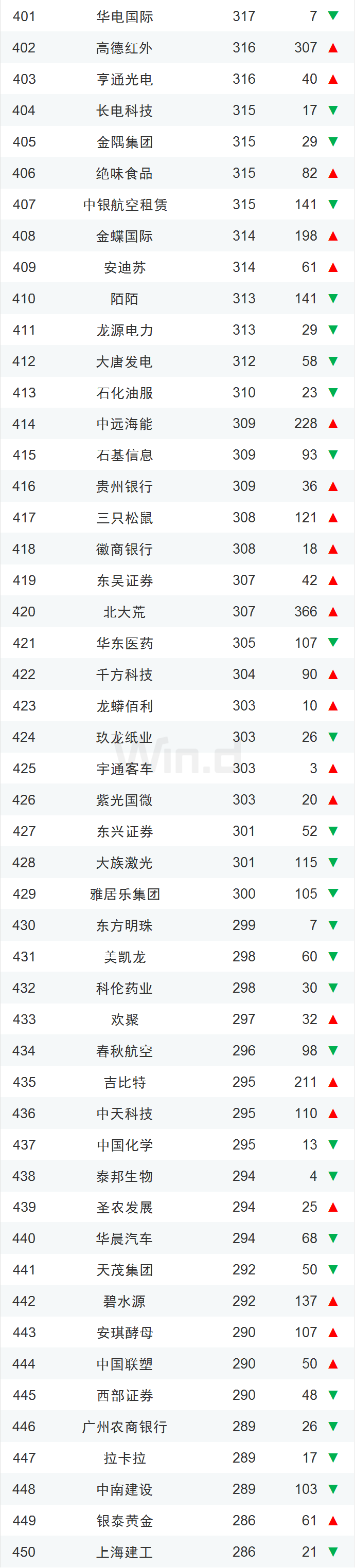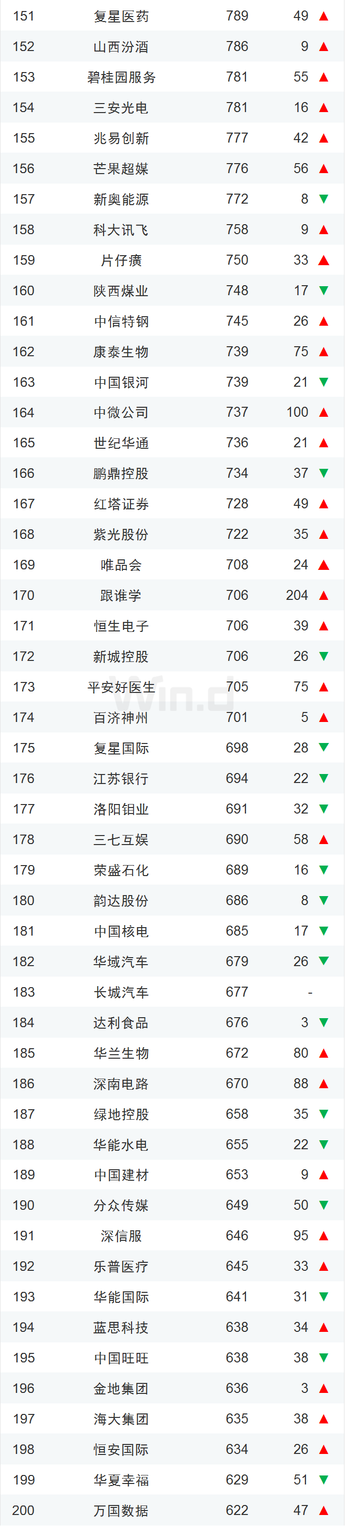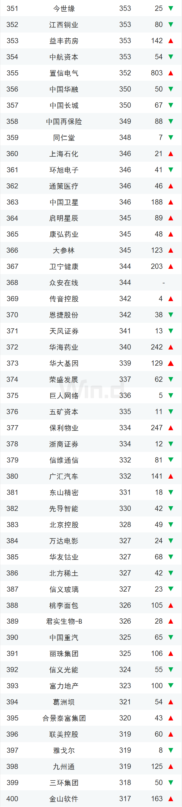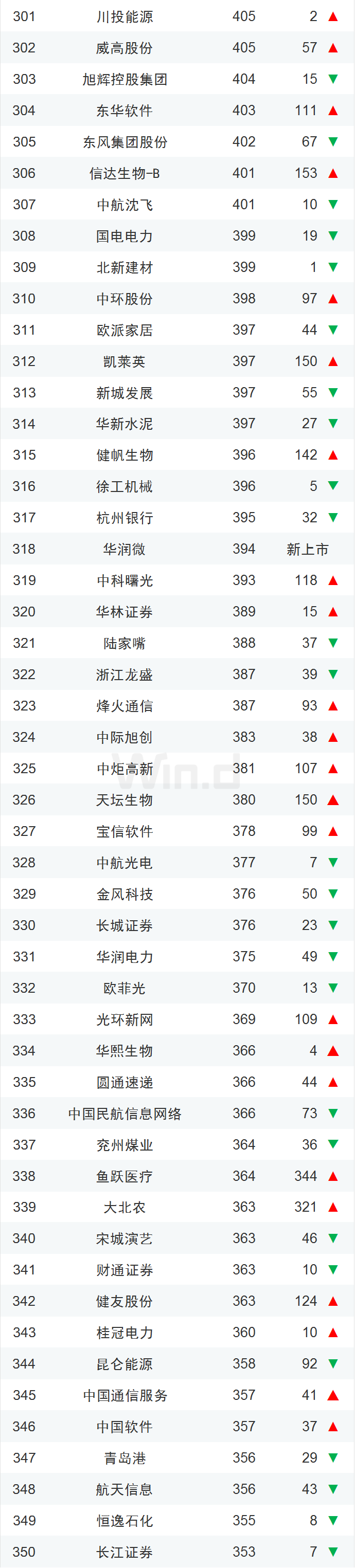 有50家新面孔跻身500强,其中多数因股价上涨市值攀升,亦有部分新上市企业。