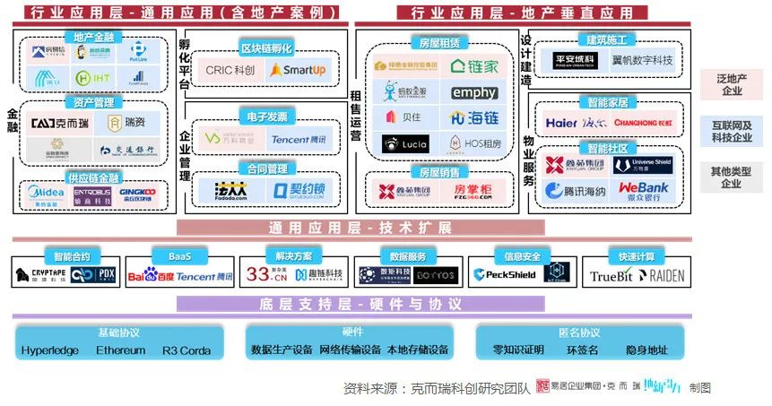 根据统计所得,当前共有几十家区块链+地产企业及相关产品,区块链产业主要集中在应用层的金融、孵化平台、企业管理、租售运营、设计建造、物业服务等方向上,在地产行业内的发展主要涉及地产金融、房屋租赁、房屋销售、建筑施工、智能家居、智能社区等领域。经过此次疫情影响,在未来的一段时间内,区块链在产业园区内的应用将更加明显。我们克而瑞也成立了科创板块,主要从事行业的区块链研究,给企业提供各种链改服务!