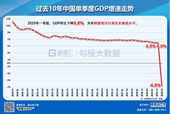 我看了一下,主要偏离发生在第三产业。GDP下了6.8%,第二产业下了9.6个百分点,对GDP贡献最大的第三产业,只下了5.2个百分点: