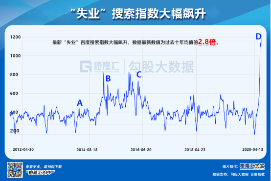 最新“失业”百度搜索指数大幅飙升,最新数值为过去十年均值的2.8倍: